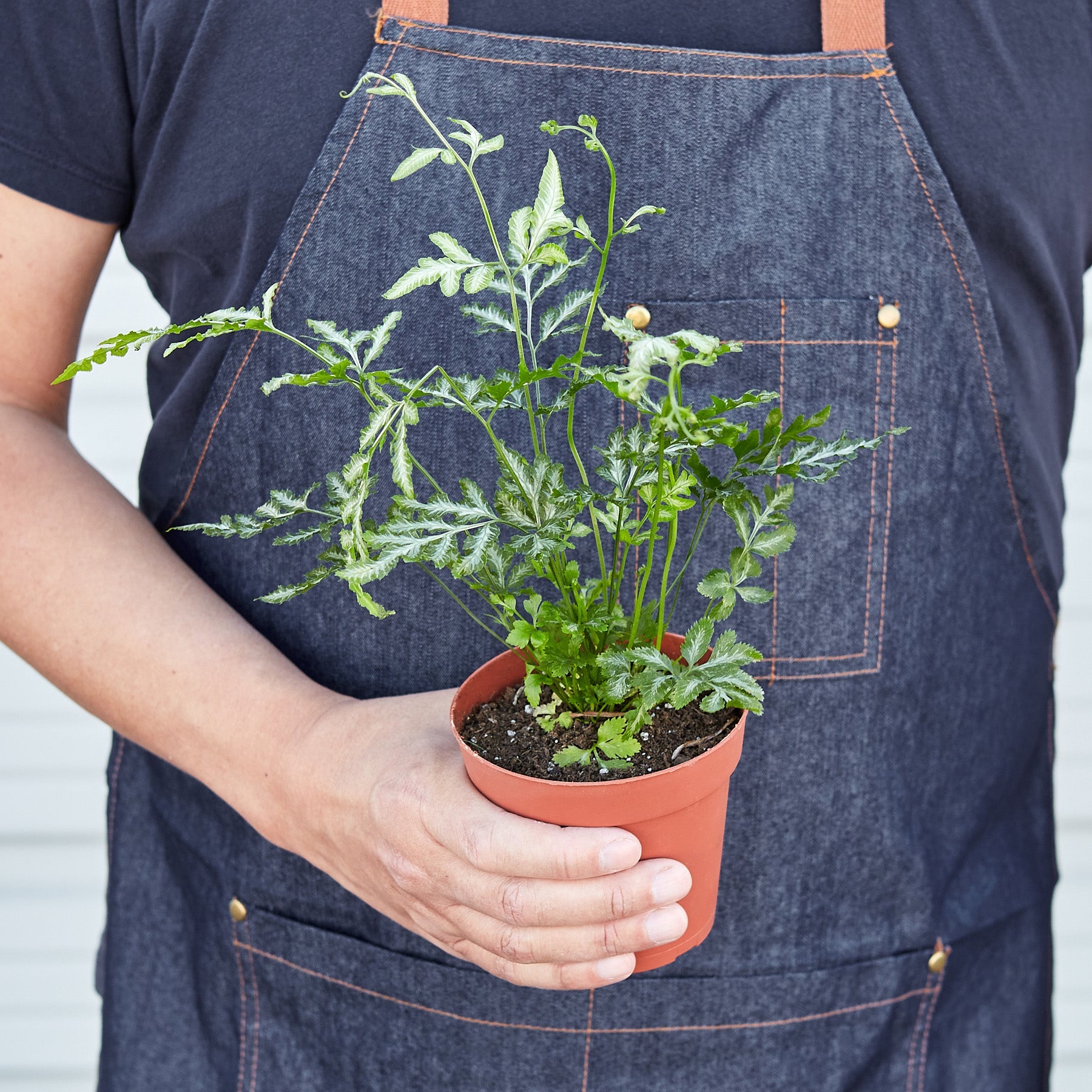 - Description: Native to Asia and the Pacific, the Silver Lace fern is the most common variant of the Pteris ensiformis species, with its delicate, silvery green leaves and compact growth habit. Outdoors, the Silver Lace fern can survive year round in subtropical climates such as California. Care is similar, if not easier, than other ferns, requiring indirect sunlight, humidity, and pruning. It can grow up to 1-2.5 feet.