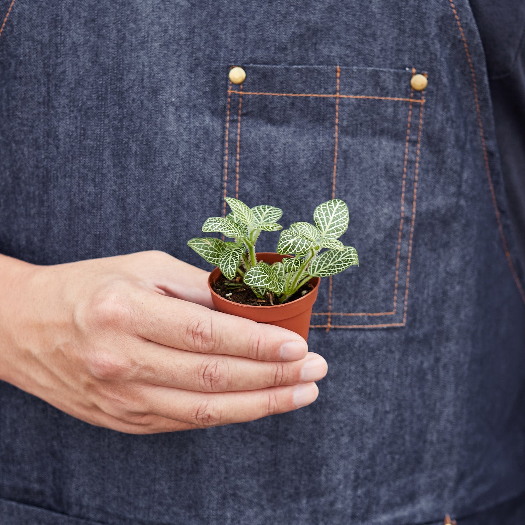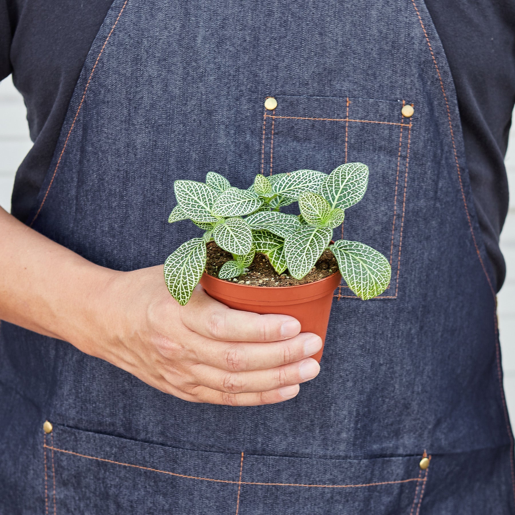 - Description: The Fittionia is a spreading evergreen perennial with delicately veined, deep-green leaves. Although the most popular vein color is silvery-white, you can also readily find varieties with veins in red, pink, white, and green. Small buds may appear after a time where the stem splits into leaves. Flowers are small with a white to off-white color.