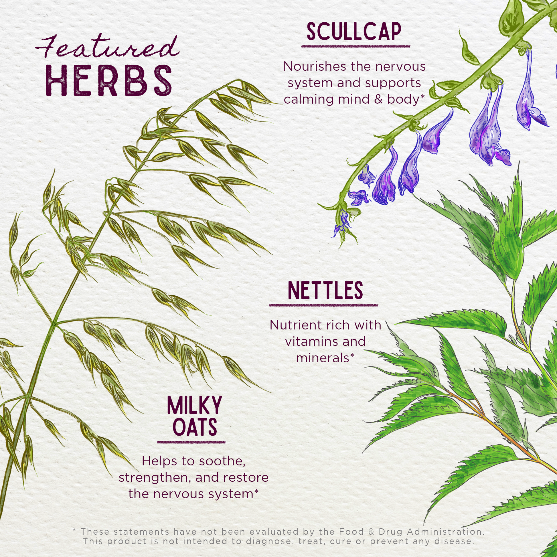 - Scullcap aerials: Scutellaria lateriflora extracts contain significant amounts of flavonoids, including baicalin and scutellarin, which are believed to be the active properties accounting for its ability to ease tension and spasms, and calm the body into a restful state.