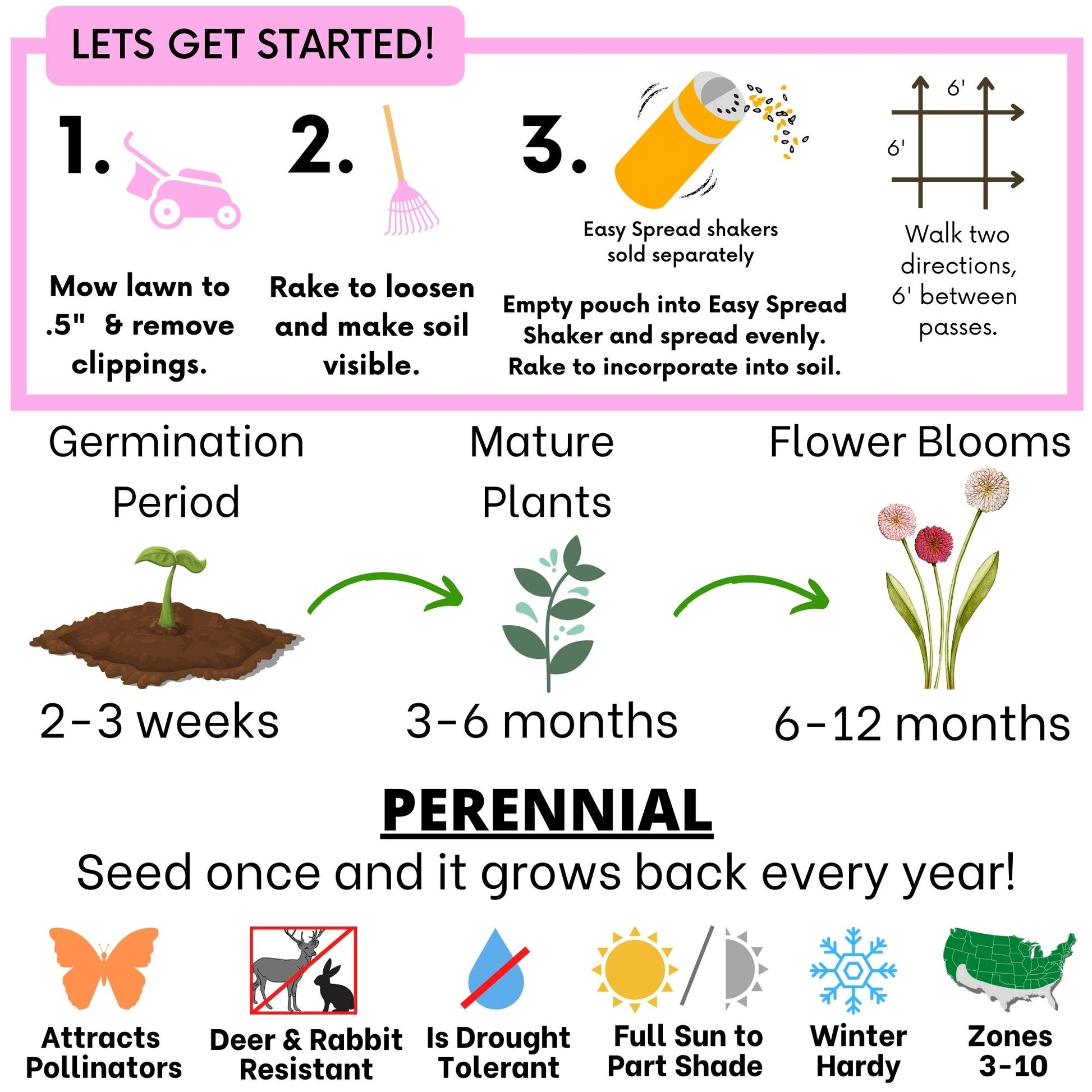 - Better For Your Family & The Environment -- Our specialty flowering lawn seed is kid and pet friendly. It attracts beneficial pollinators while reducing your property's carbon footprint!