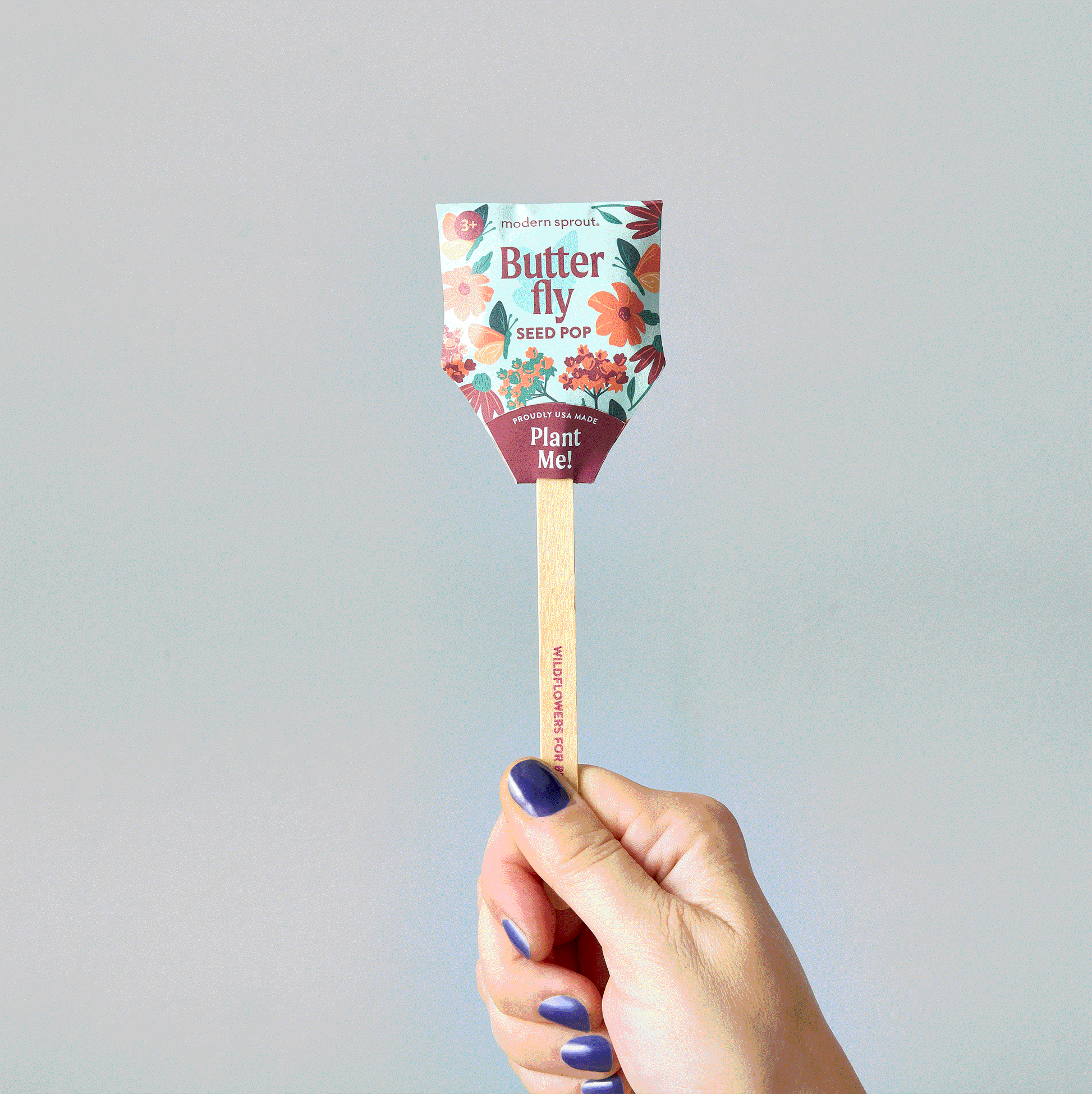 A playful take on seed starting that supports our Pollinators! Each Bumble Bee, Butterfly and Song Bird Seed Pop includes a curated selection of perennial wildflower seeds, clay, worm-castings and planting instructions. Just unwrap, plant and grow. Once planted, the wooden stick serves as a garden marker. Makes a great party favor, gift topper or special treat.