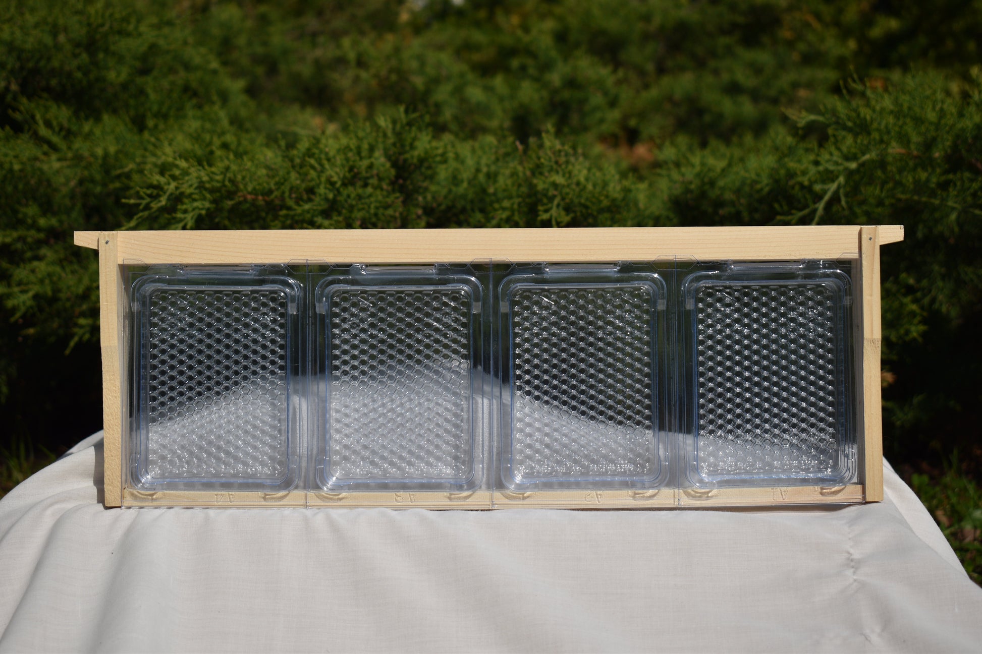 This pack includes 20 SimplKomb cassettes to install into 10 medium, Langstroth frames that you will then add to your honey super. The Single Pack outfits one honey super and renders 80 individual packages of comb honey.