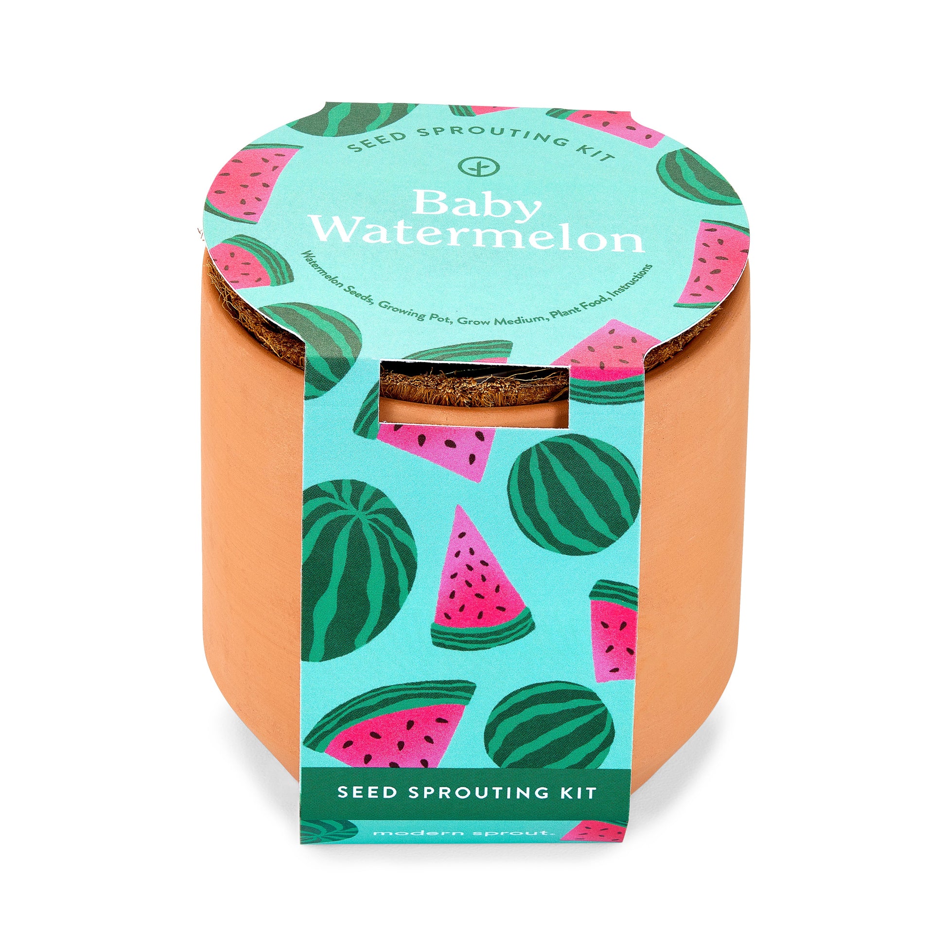Comes equipped with everything you’ll need to start your fruit and veggie garden, just add water and set in a sunny window. Features a terracotta planter with a water-tight glazed interior and a nested coconut husk liner that provides drainage. As the plant matures, the liner can be transplanted into a larger pot or garden outdoors. A great way to try starting from seed.